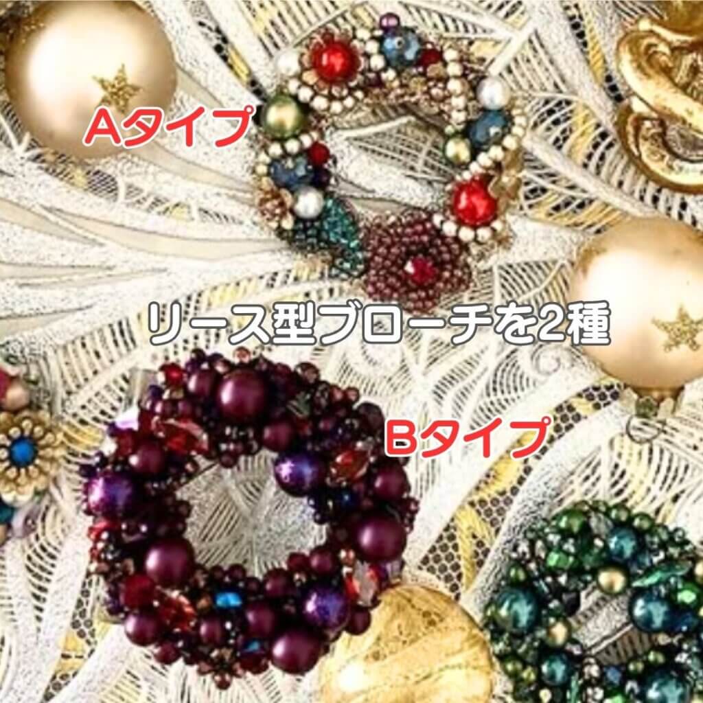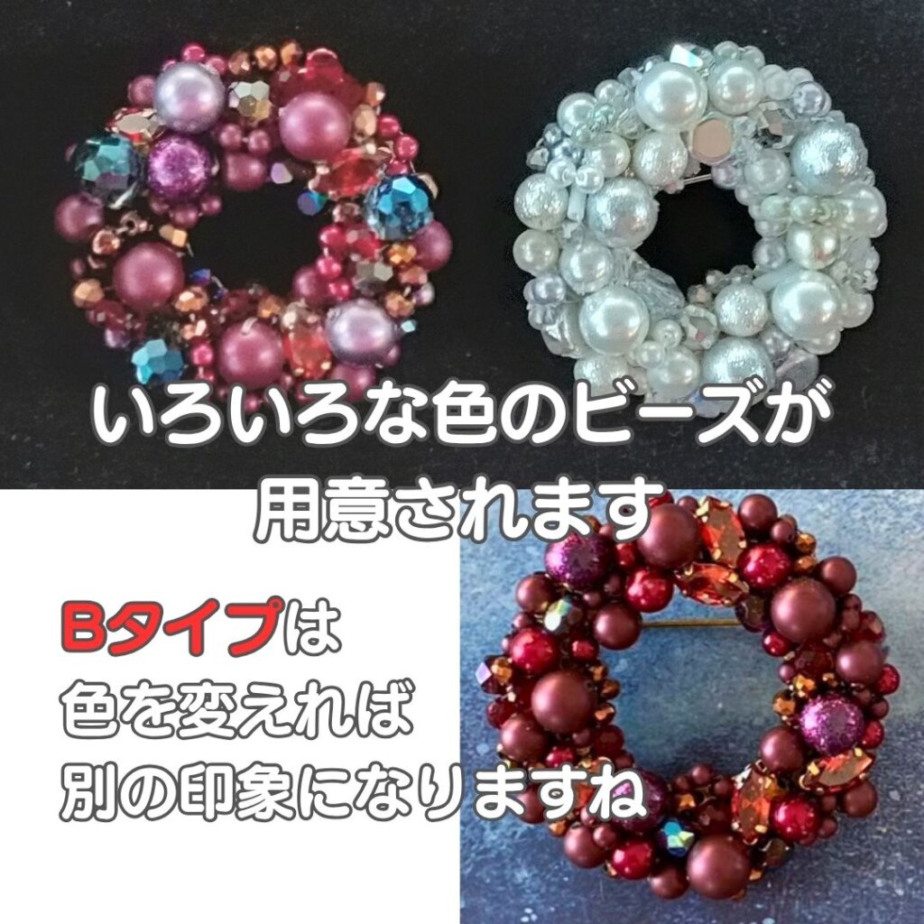 リース型は、正にXmasリースといった感じのかわいいAタイプと、ビーズの色で全く印象が変わるオシャレなBタイプ。