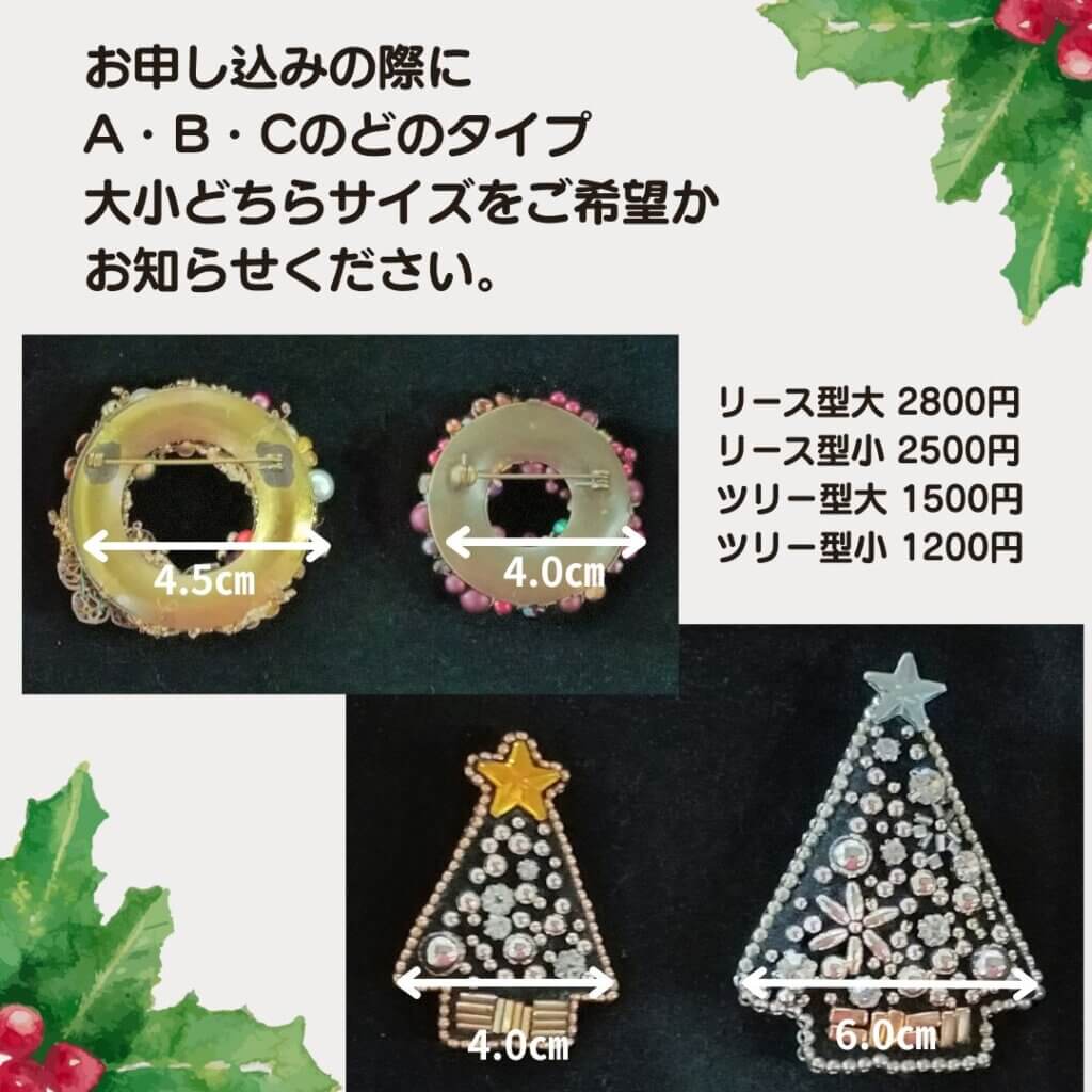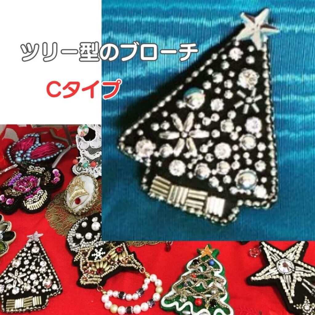 ツリー型のCタイプも、大小2種類用意してくださり、お好きな方を選べます。 こちらはフェルトの型で作るので軽いです。ベレー帽などに付けたらカワイイかも。